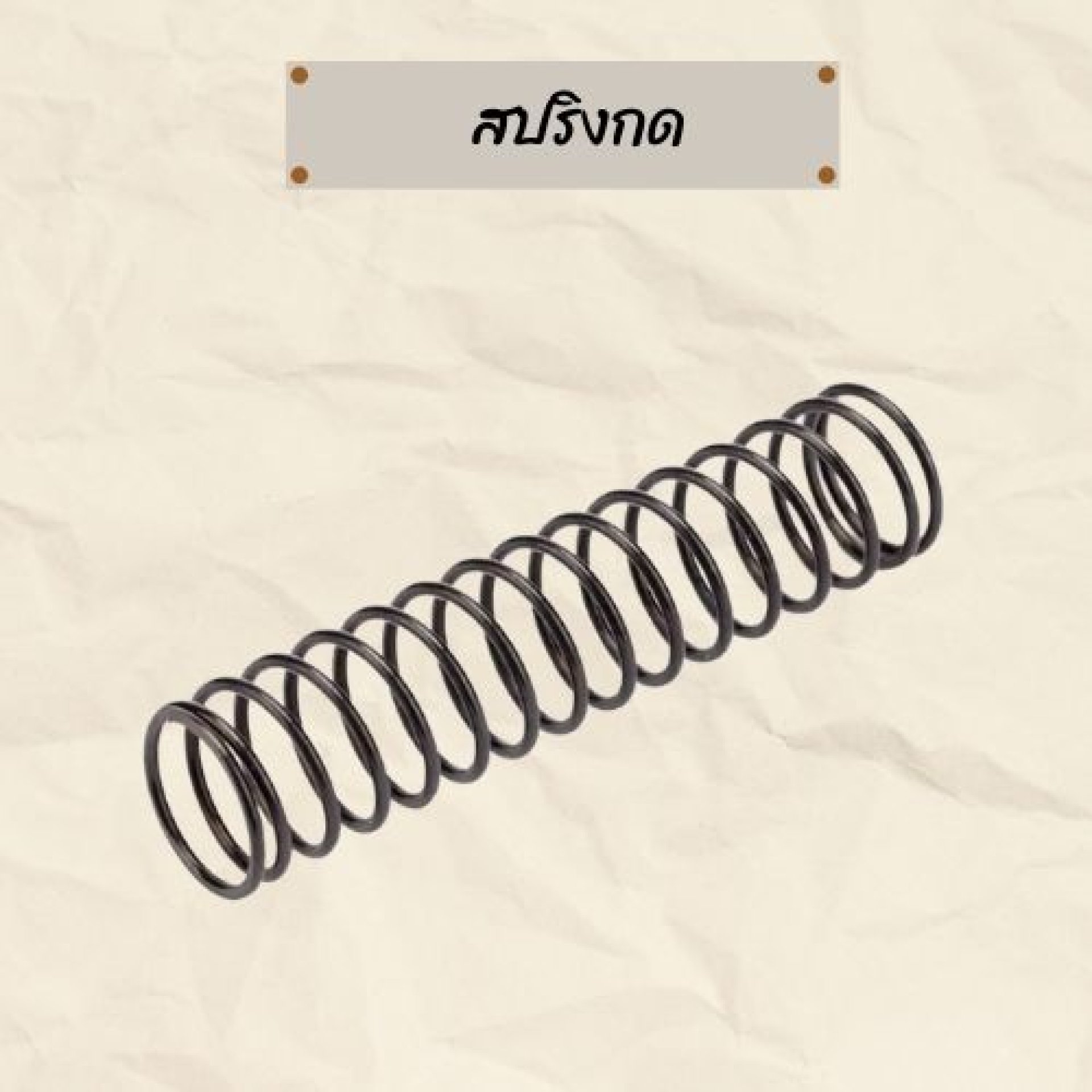 - ลักษณะลวด : ลวดของสปริงกดจะถูกม้วนให้เป็นเกลียวห่างกันเพื่อให้มีความยืดหยุ่นและสามารถหดลงเมื่อรับแรงกด