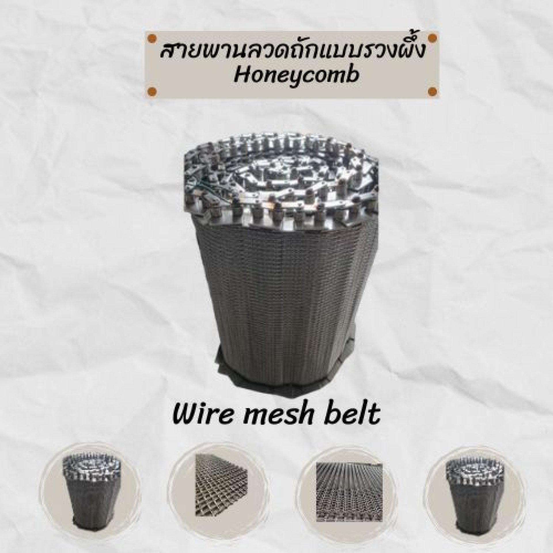 สายพานลวดถักแบบรวงผึ้ง (Honeycomb Conveyor Belt) เป็นสายพานลำเลียงที่ออกแบบมาด้วยโครงสร้างที่คล้ายกับรังผึ้ง ทำจากลวดที่ถูกถักทอในลักษณะที่มีช่องว่างเหมือนรังผึ้ง มีน้ำหนักเบาแต่ยังคงความแข็งแรงสูง โครงสร้างนี้ช่วยให้สายพานมีการระบายอากาศและการทำความสะอาดได้ดี เหมาะสำหรับการลำเลียงสินค้าในกระบวนการที่ต้องการความสะอาดและความรวดเร็วในการขนส่ง